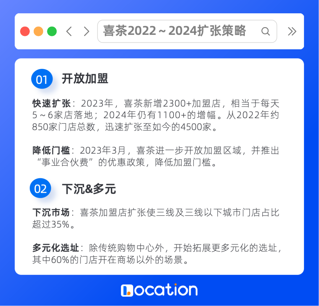 在新茶饮行业竞争愈发激烈的背景下,曾经坚持十年直营的喜茶,也投身于规模之战,主要通过开放加盟与下沉多元策略推进。